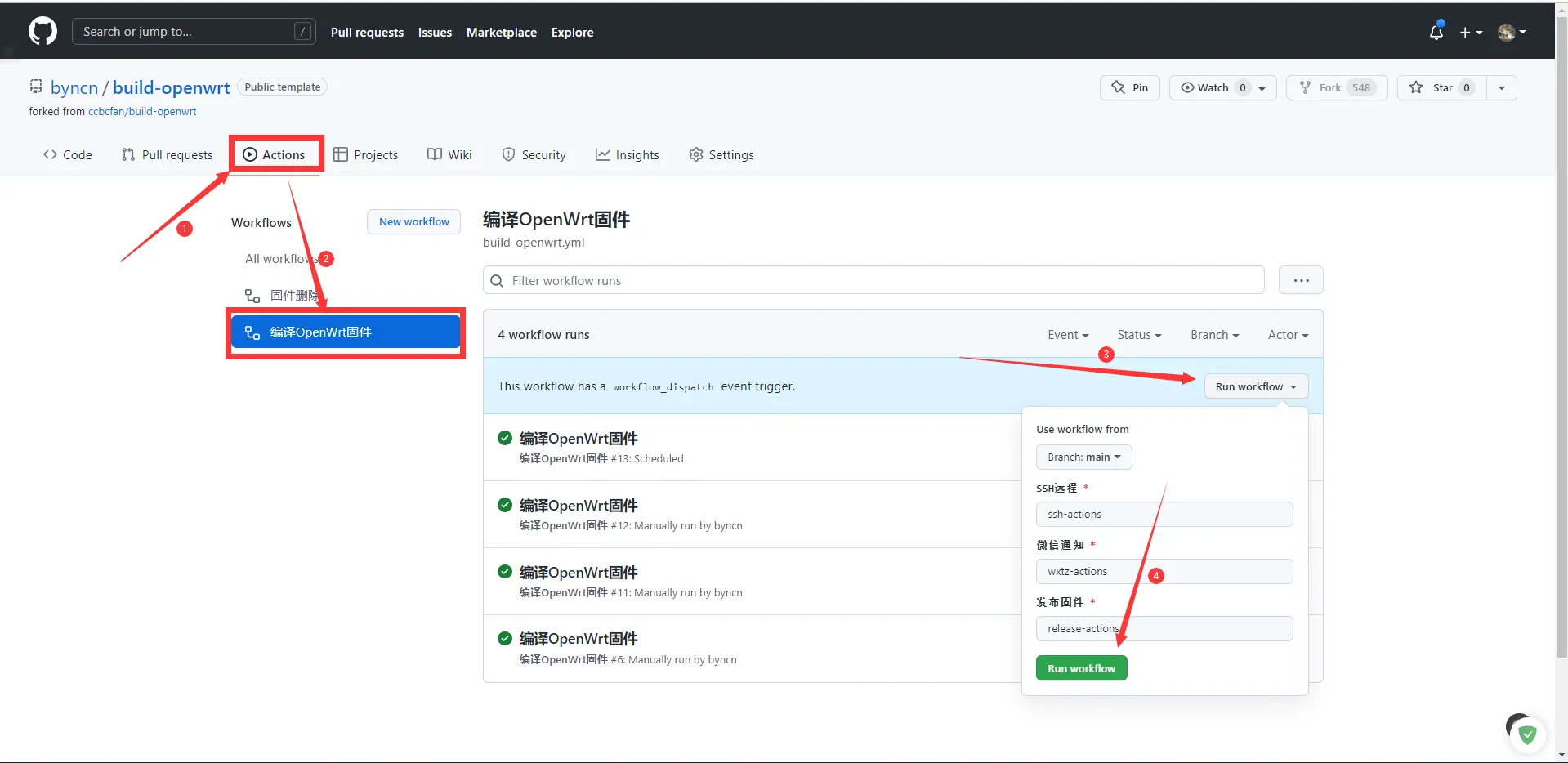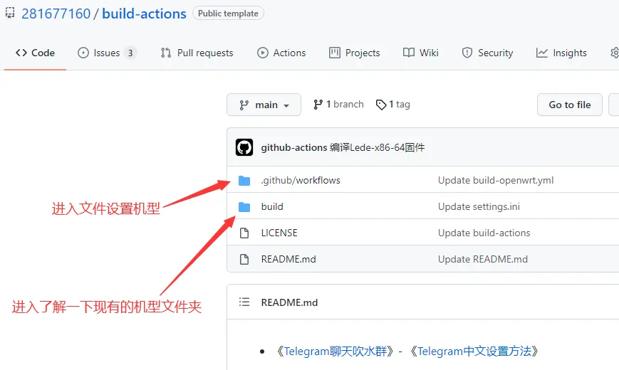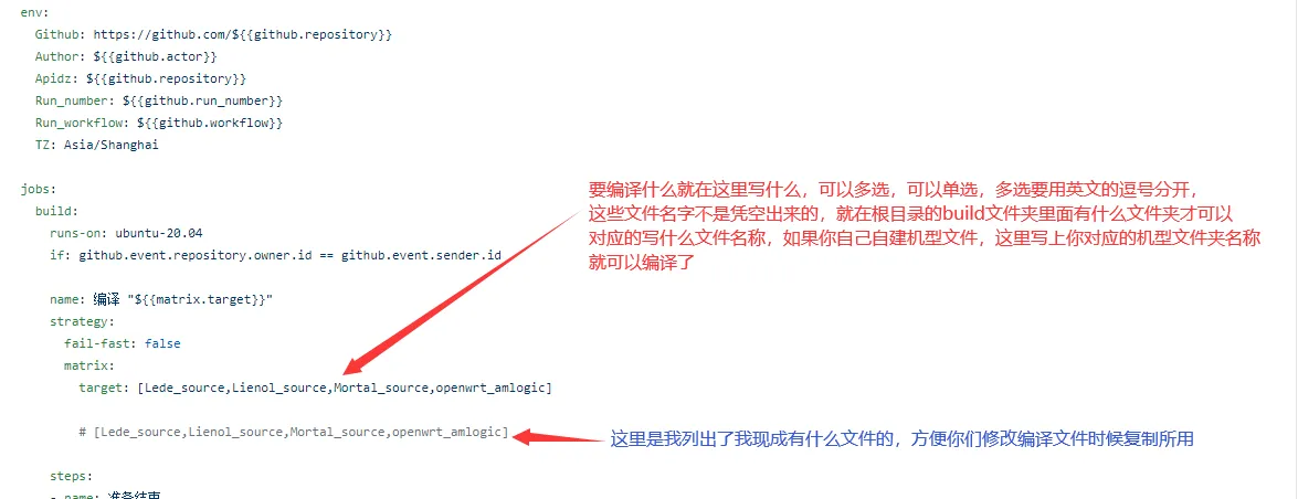 选择要编译的源码跟机型,在.github/workflows文件夹里面的build-openwrt.yml文件修改。