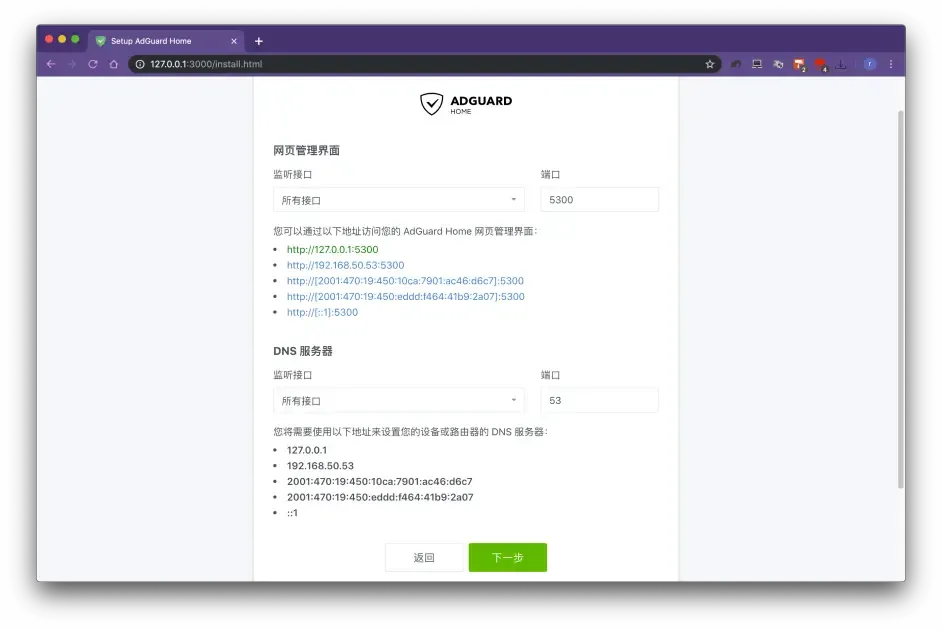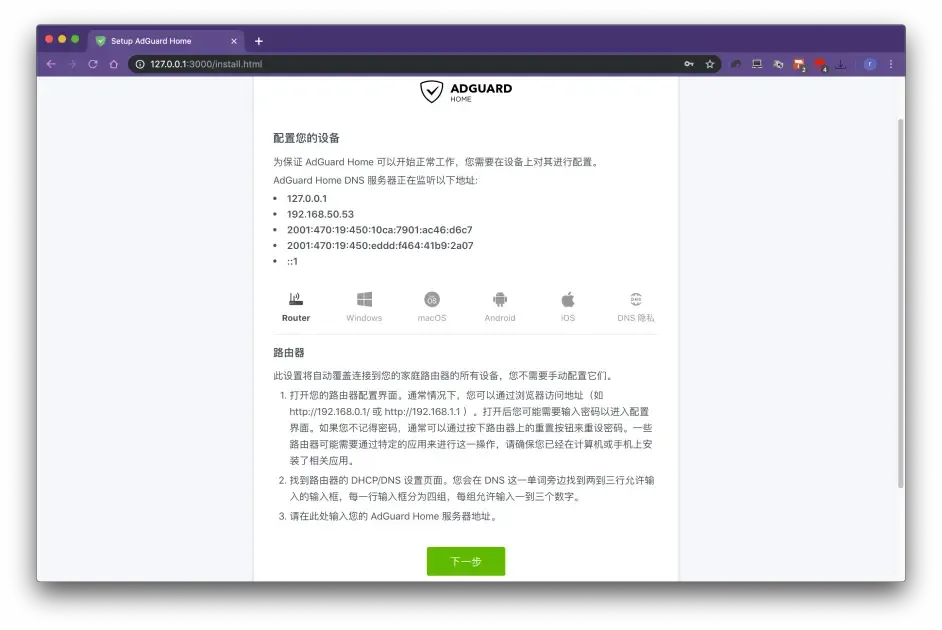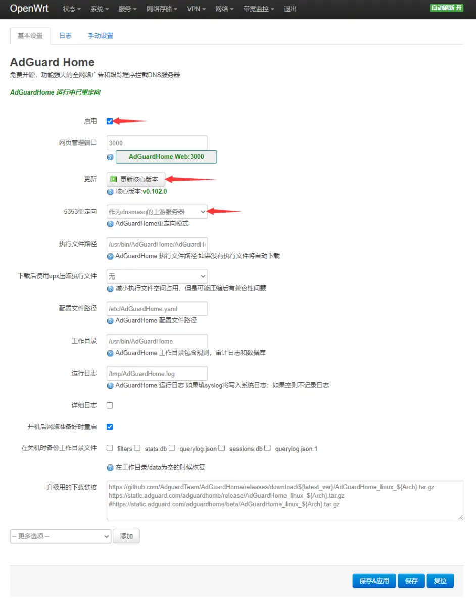 1.点击 AdGuardHome Web:3000 跳转 AdGuard Home 管理页面
