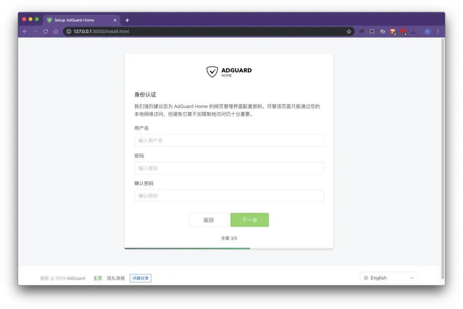 设置登陆 AdGuard Home 管理页面的用户名和密码