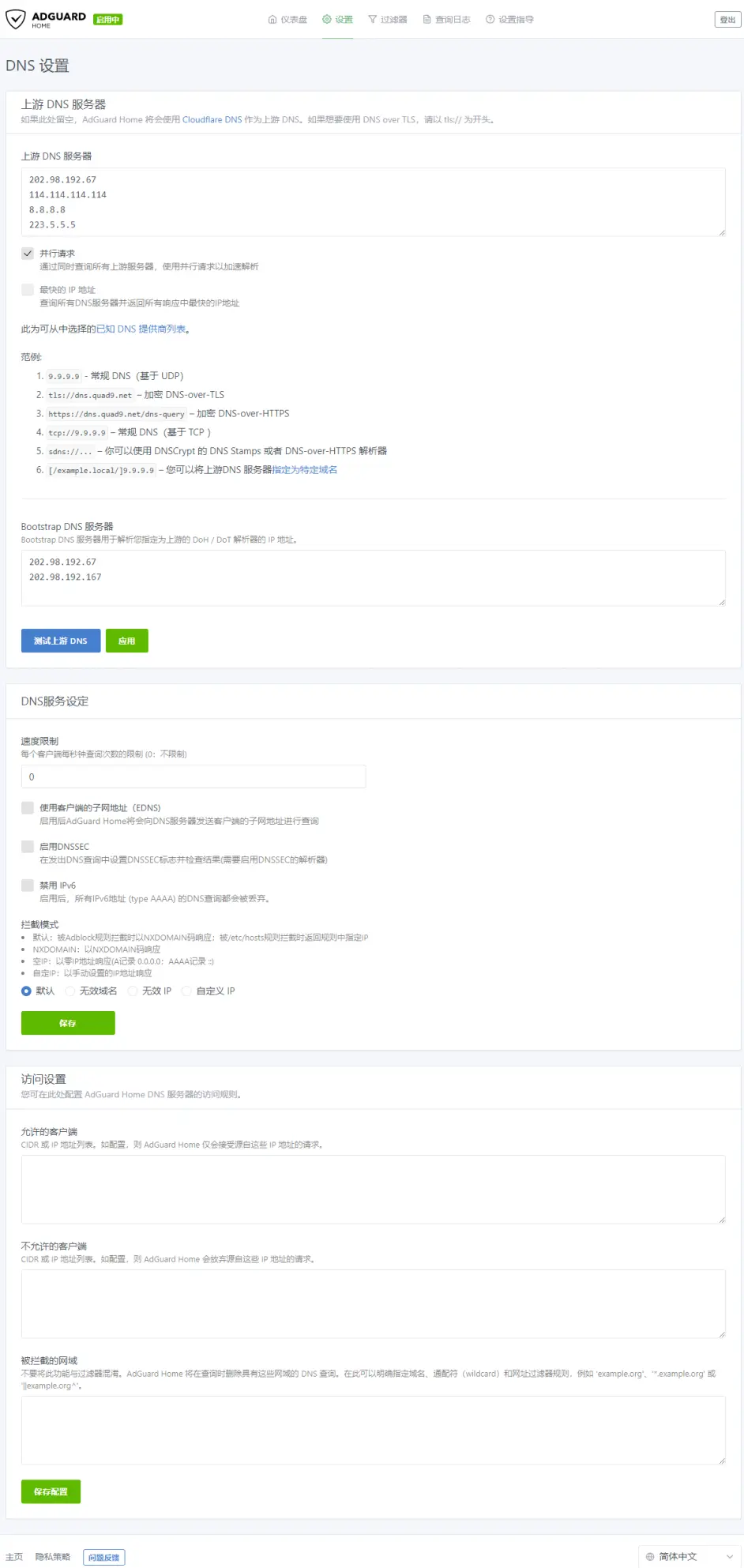 上游 DNS 服务器,第一个 IP 设置成你的运营商 DNS,后面 3 个可以如图填写!
